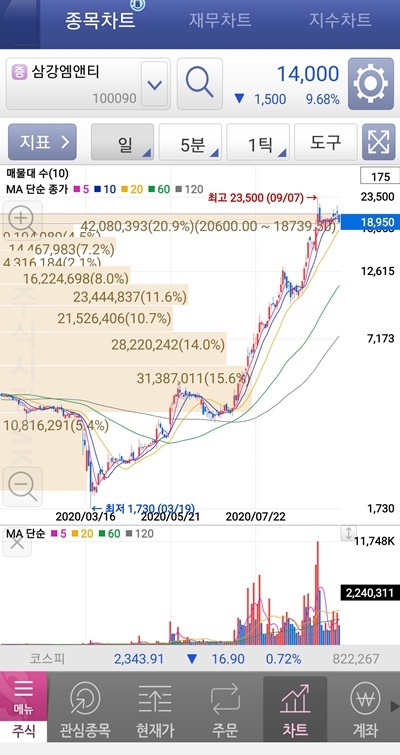 매물대 차트 설정 방법