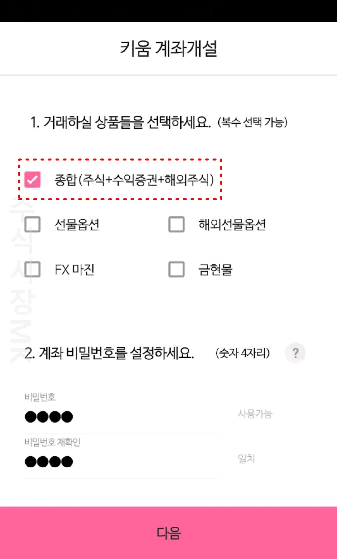 3. 거래하실 상품에서 종합(주식+수익증권+해외주식)을 선택합니다.