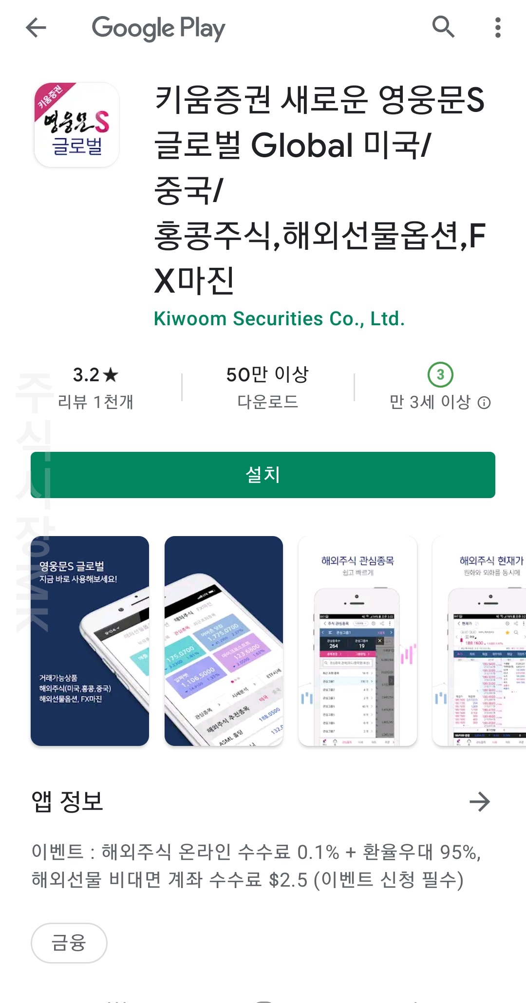 1. 키움증권 영웅문S 글로벌 어플리케이션을 다운로드 받습니다.