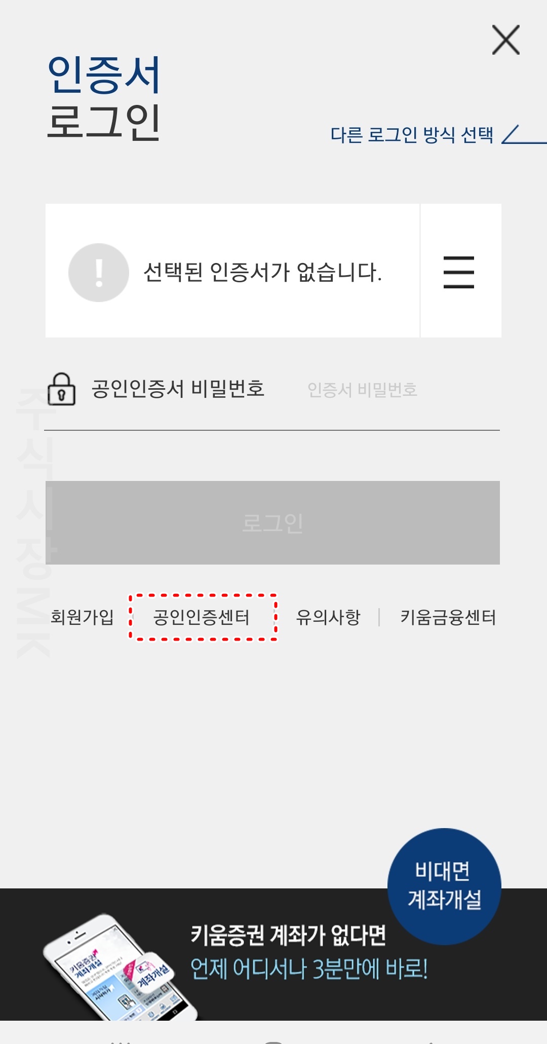 5. ID 또는 계좌번호로 주식거래용 공인인증서를 발급받습니다.