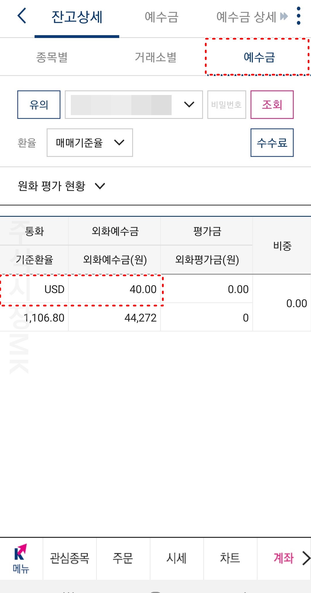 5. 통화 USD - 외화예수금 40 달러를 확인합니다.