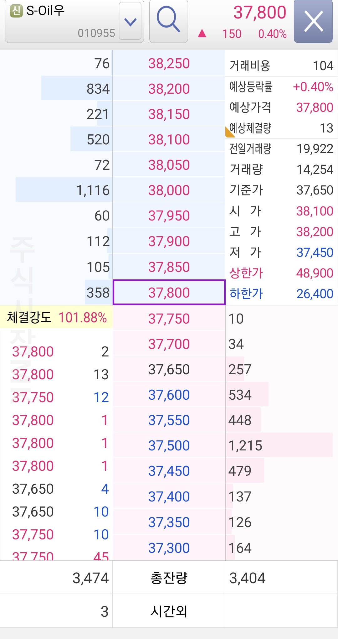 만약 이 상황에서 점점 매수 우위가 발생하게 되면 첫매도주문인 37,800원이 매수 1호가로 바뀌게 되며 가격은 상승하게 된다는 것입니다. 이것이 호가창의 기본 개념이며 핵심이 됩니다.