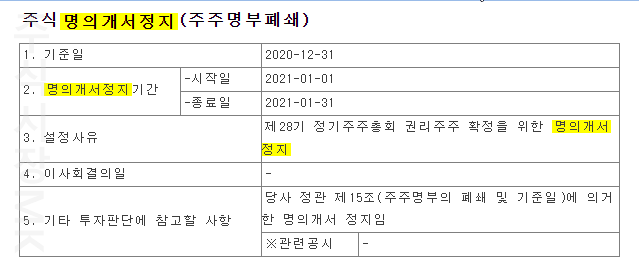 대다수 투자자들이 참가하는 정기주주총회는 대략 3월~4월 중 열리며 주주명부에 등재되기 위해서는 12월 31일에 주식을 보유하고 있어야 합니다. 그래서 12월 말쯤에는 배당기준일, 주주명부 폐쇄일이 투자자들의 큰 이슈가 됩니다.