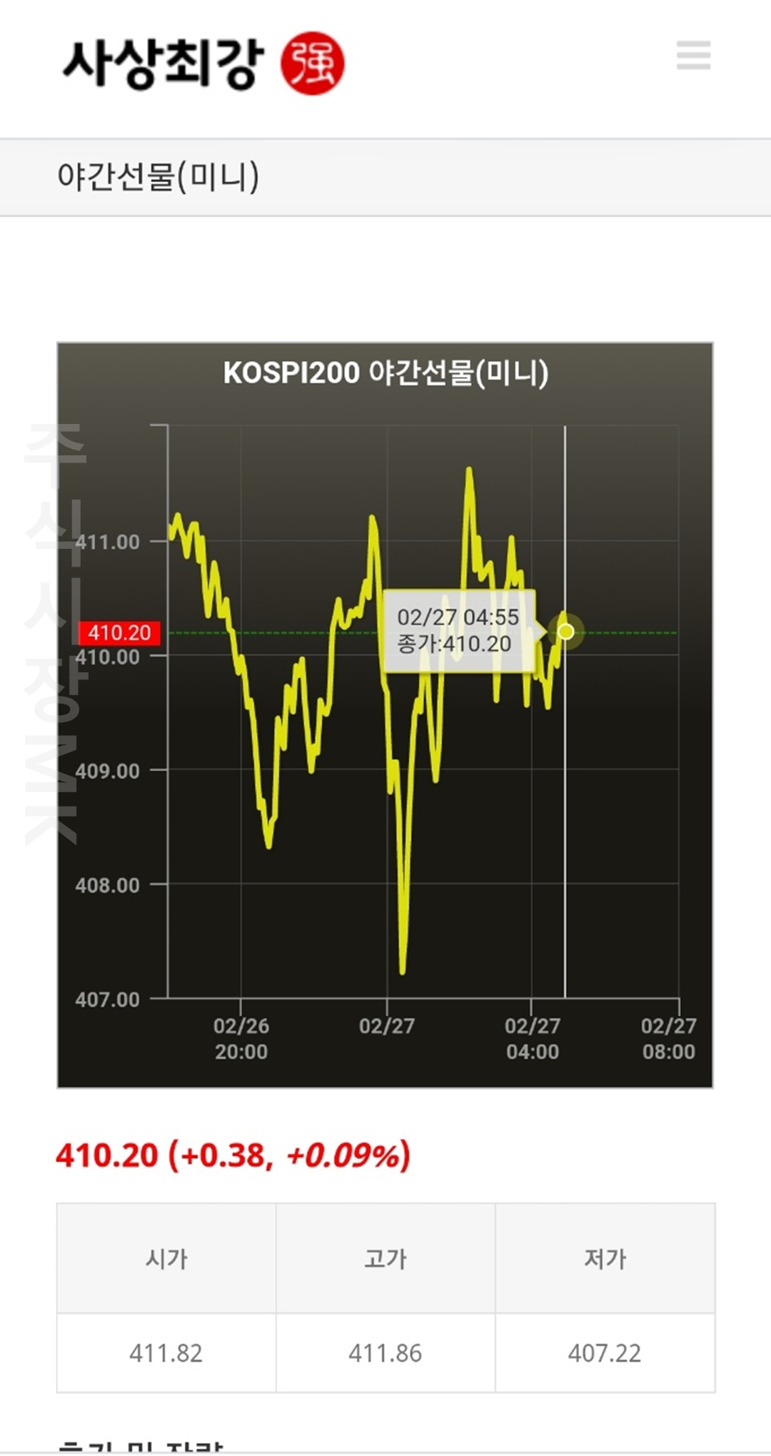 PC와 스마트폰에서 사상최강 사이트에서 제공하는 코스피 야간선물 미니 가격을 실시간으로 확인해보시길 바랍니다.