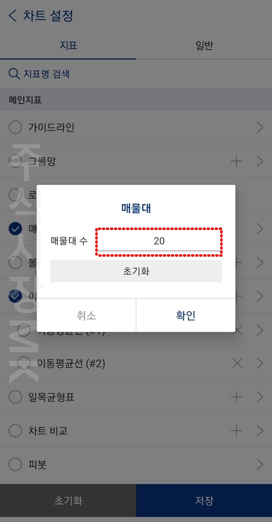 7. 매물대 수를 20으로 변경하고 설정해줍니다.