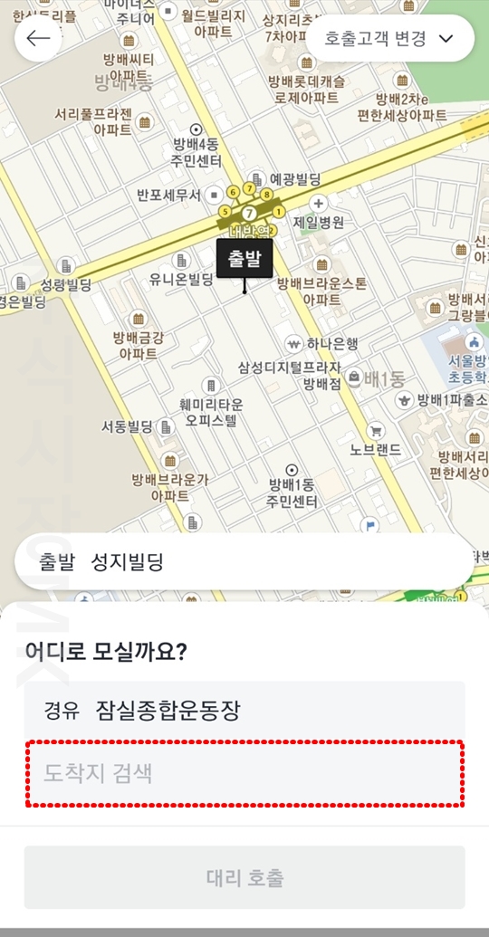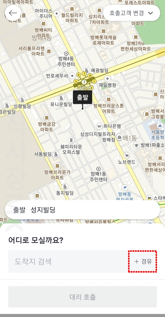 5. 카카오대리에서는 총 3개까지 경유지 설정이 가능합니다.