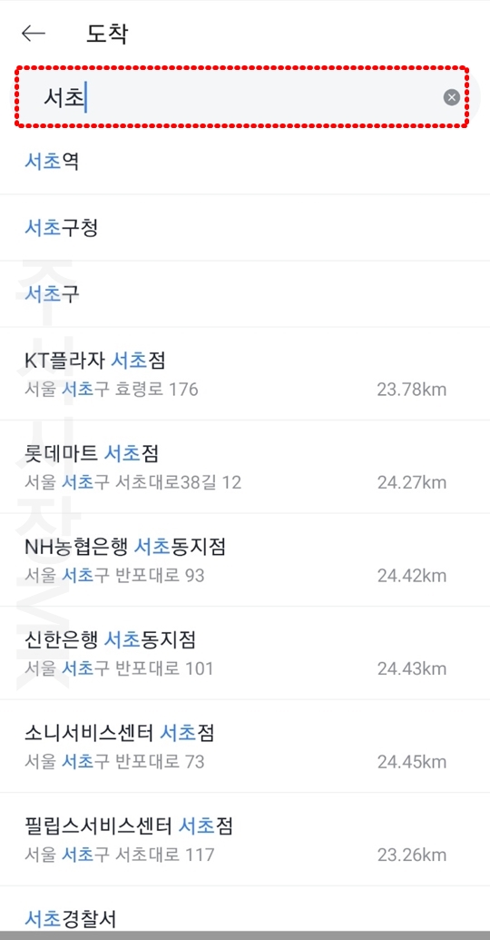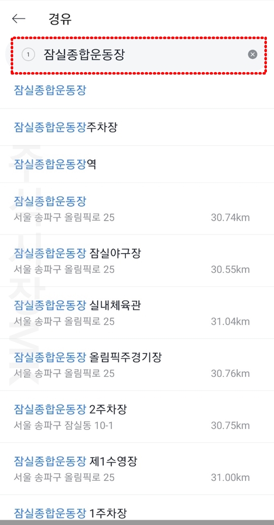 3. 경유하고 싶은 위치를 검색한 뒤 선택합니다.