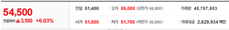 6/3일자 우리나라의 코스피 대장주인 삼성전자는 6.03%라는 놀라운 상승률을 보여줬습니다.