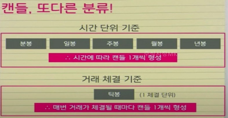 캔들의 시간 단위 기준은 분봉, 일봉, 주봉, 월봉, 년봉이 있습니다.