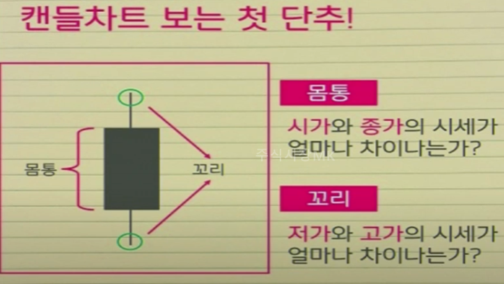 몸통의 윗쪽은 시가, 몸통의 아랫쪽은 종가입니다.