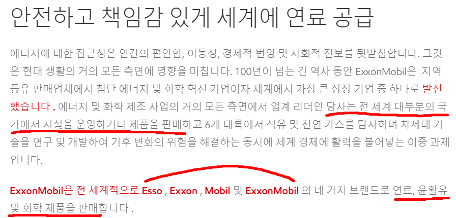 엑슨모빌은 오랜 석유 산업의 경험과 함께 적극적인 인수합병과 혁신적인 기술 개발을 통해 꾸준한 성장을 이어나가고 있느데요. 미국뿐 아니라 세계 각국에서 많은 인기를 누리며, 다양한 분야에서 다양한 사업을 전개하고 있습니다.