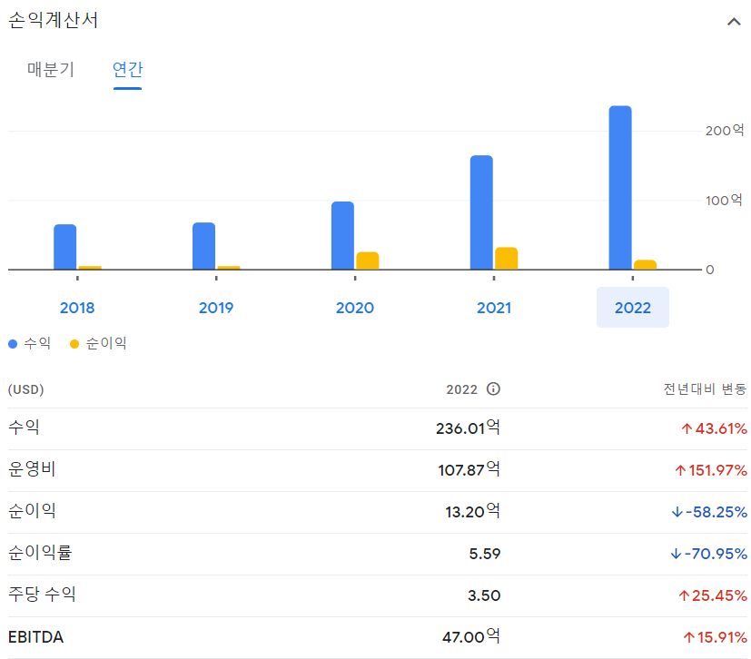 - 배당수익률: 배당지급하지않음X