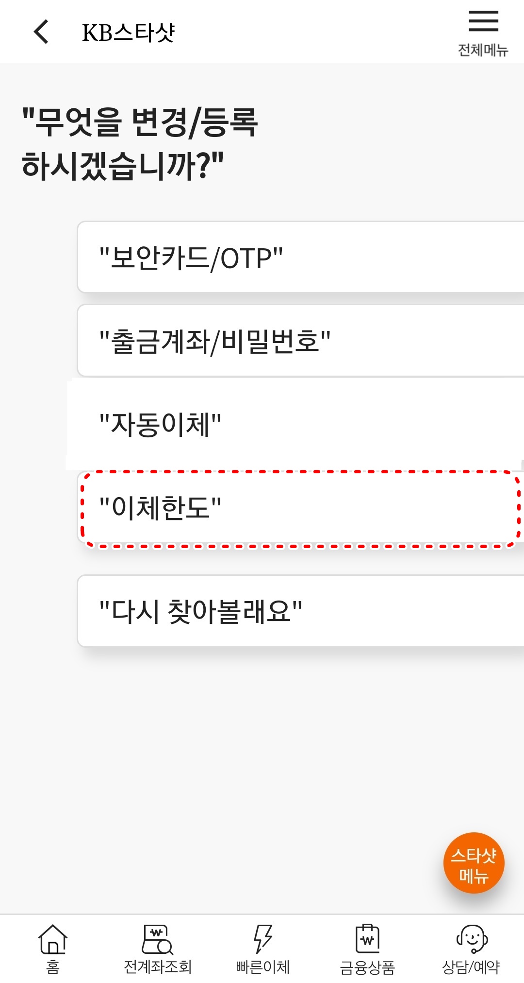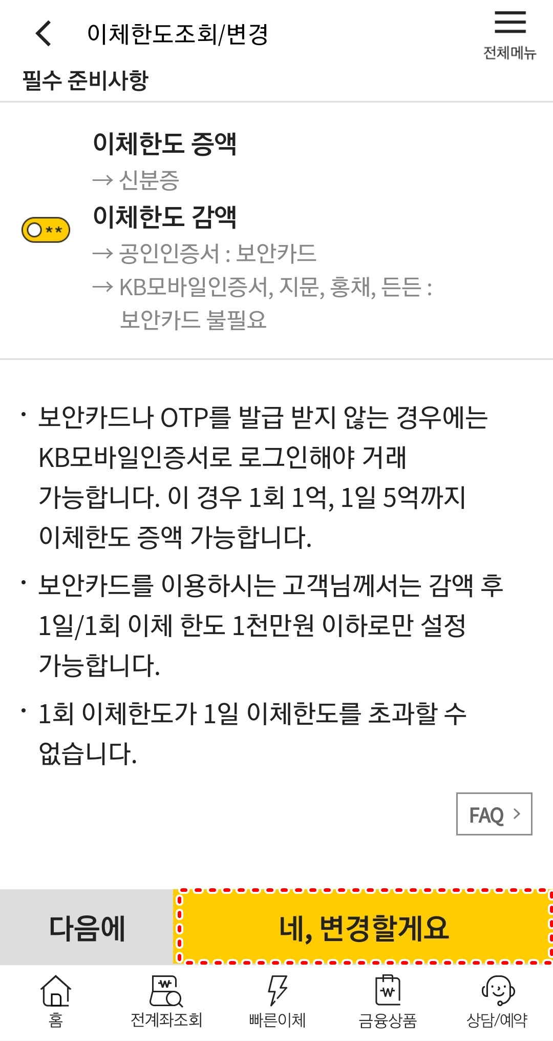 KB 스타뱅킹 어플로 집에서 국민은행 이체한도 증액하기