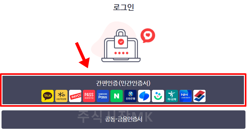 4. 간편인증이나 다른 로그인 방법을 선택하여 로그인합니다.