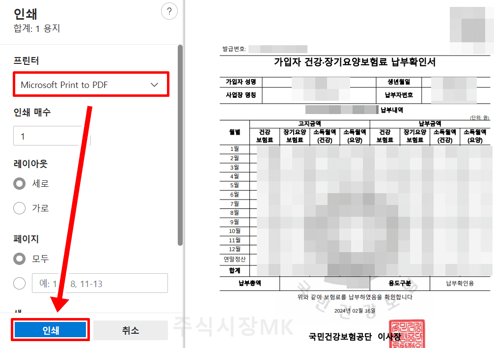 PC 건강보험료 납부확인서 인터넷 발급 방법