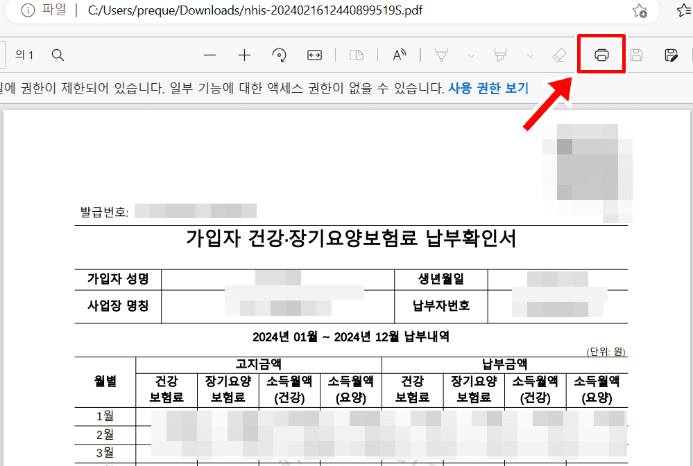 11. 건강보험료 납부확인서가 PDF로 저장됩니다.