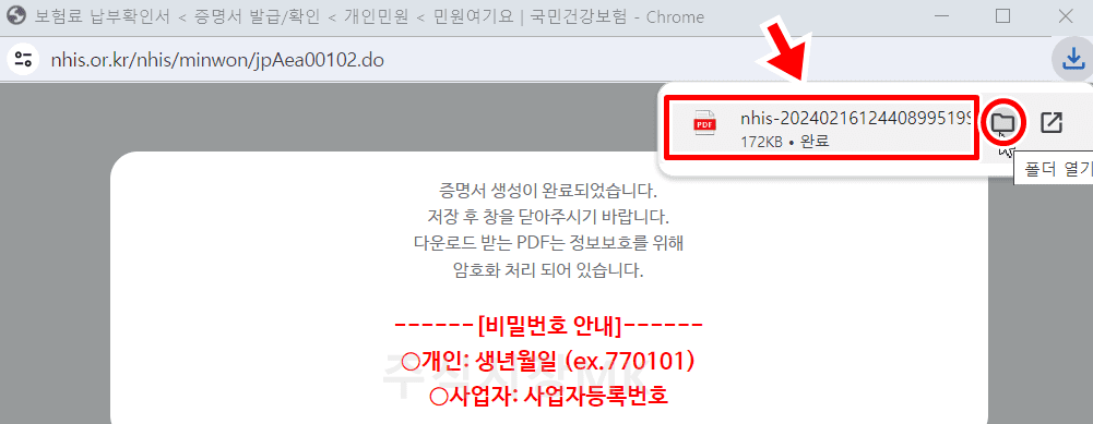 12. 확인 및 발급을 위해서 저장된 PDF 파일을 클릭합니다.