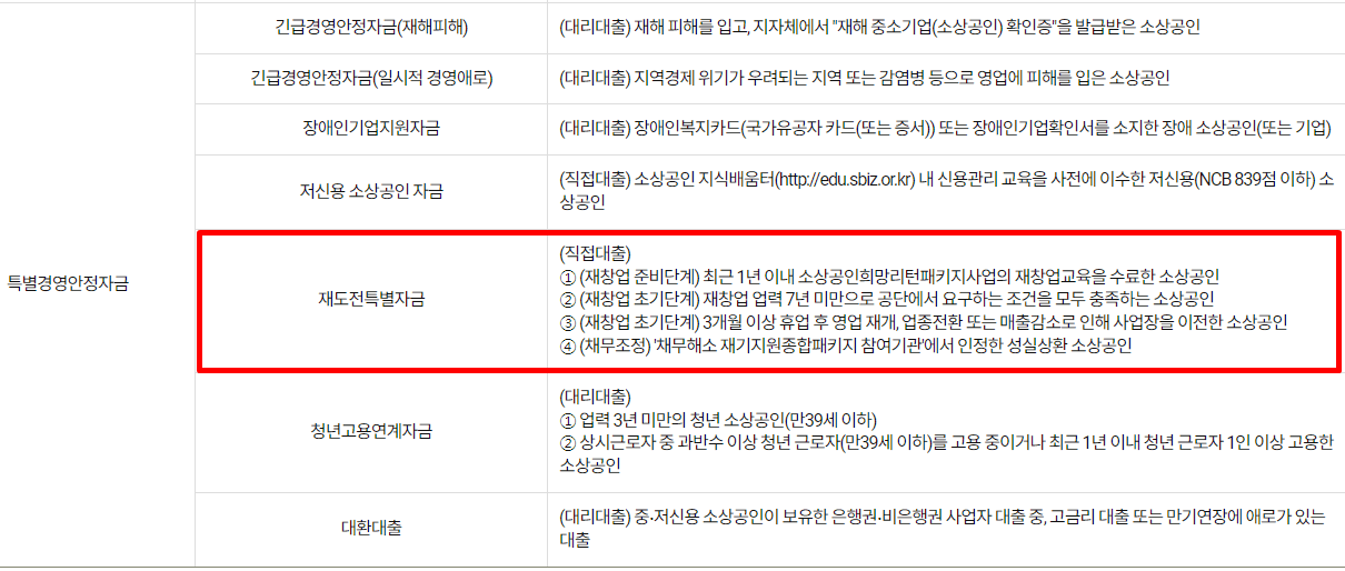 소상공인 재도전특별자금 신청 대상 (자격 조건)