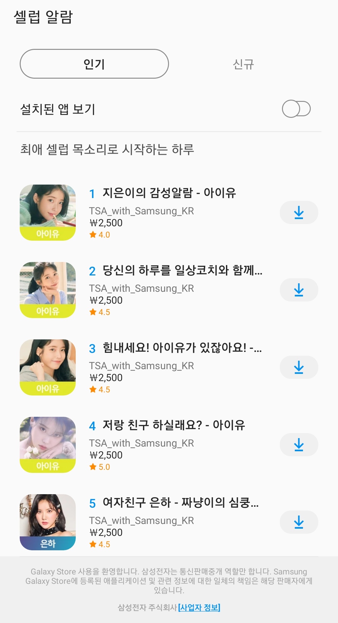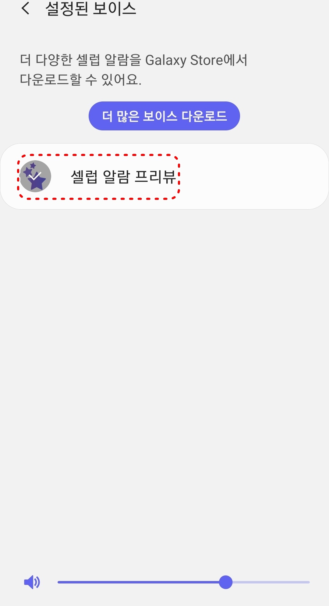 5. 셀럽 보이스에서 설정된 보이스를 누르고 다른 보이스를 다운로드 받거나 무료로 제공되는 프리뷰를 사용할 수 있습니다.