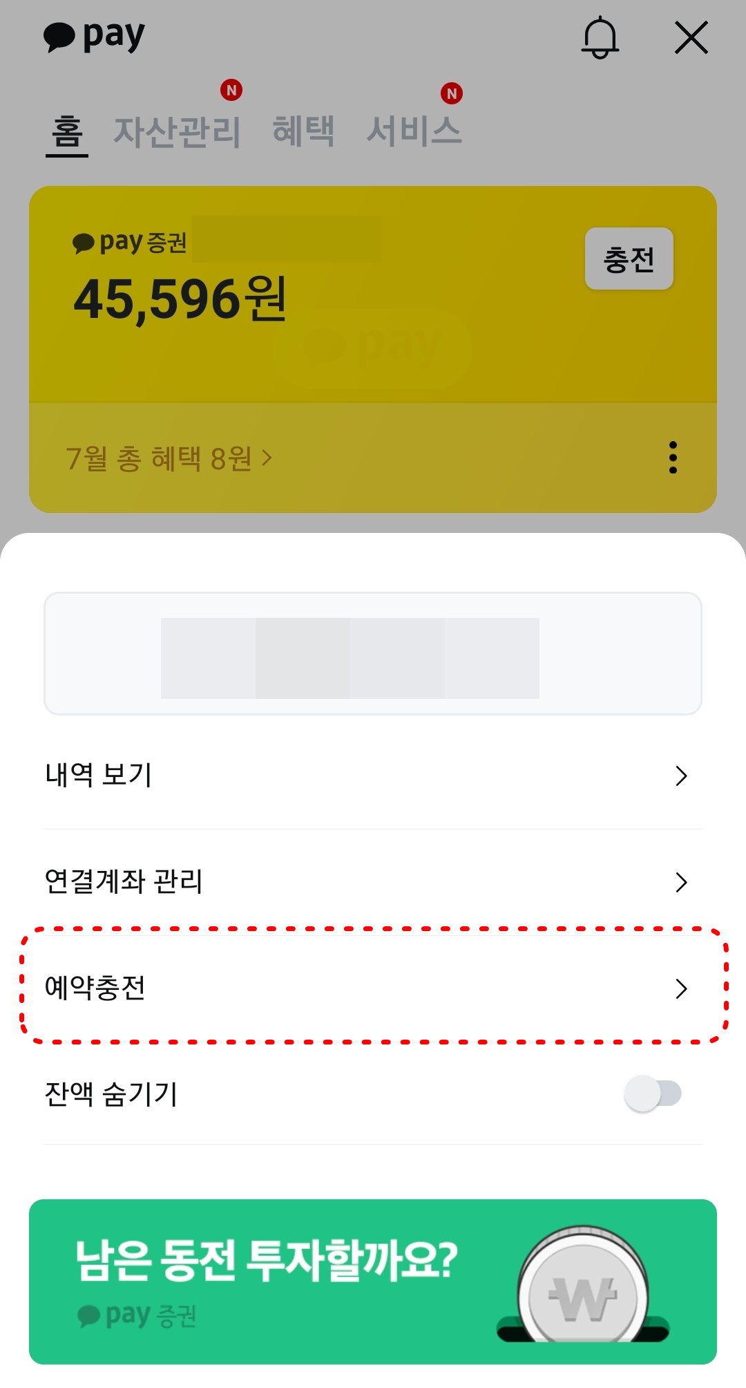 카카오페이 자동충전 설정하기