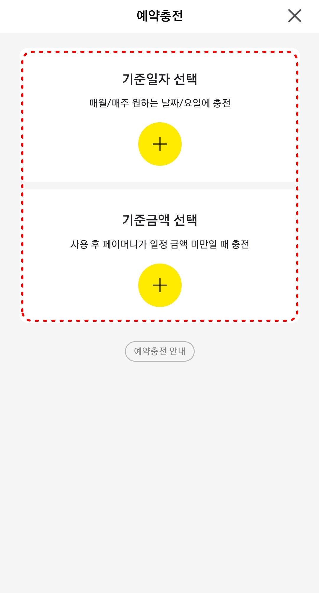 -기준일자: 매월, 매주 원하는 날짜 또는 요일에 추전 (특정 일자 또는 요일을 선택해두면 원하는 금액만큼 충전됩니다.)