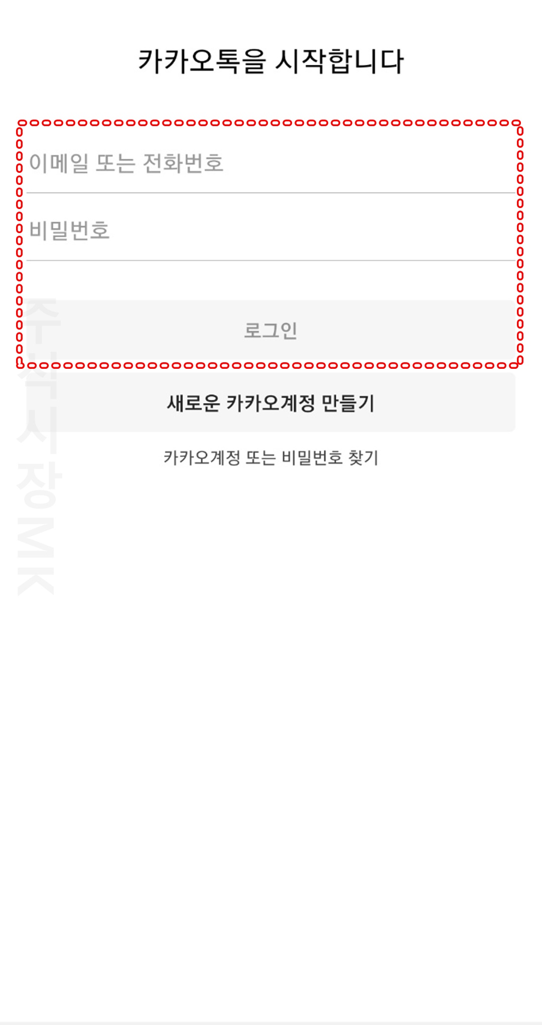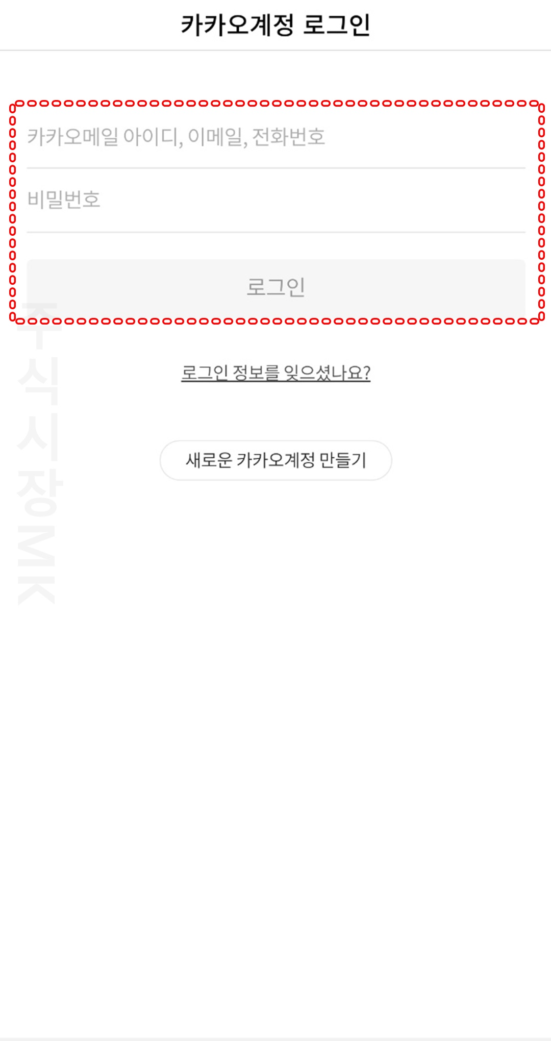 8. 카카오계정으로 로그인을 누르면 아이디, 비밀번호 입력창이 나옵니다.