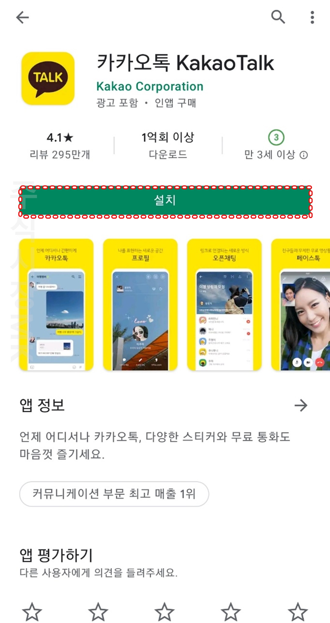 11. 카카오페이지에 다른 계정 로그인이 되었다면 구글 플레이 스토어에서 카카오톡을 다운로드 받습니다.